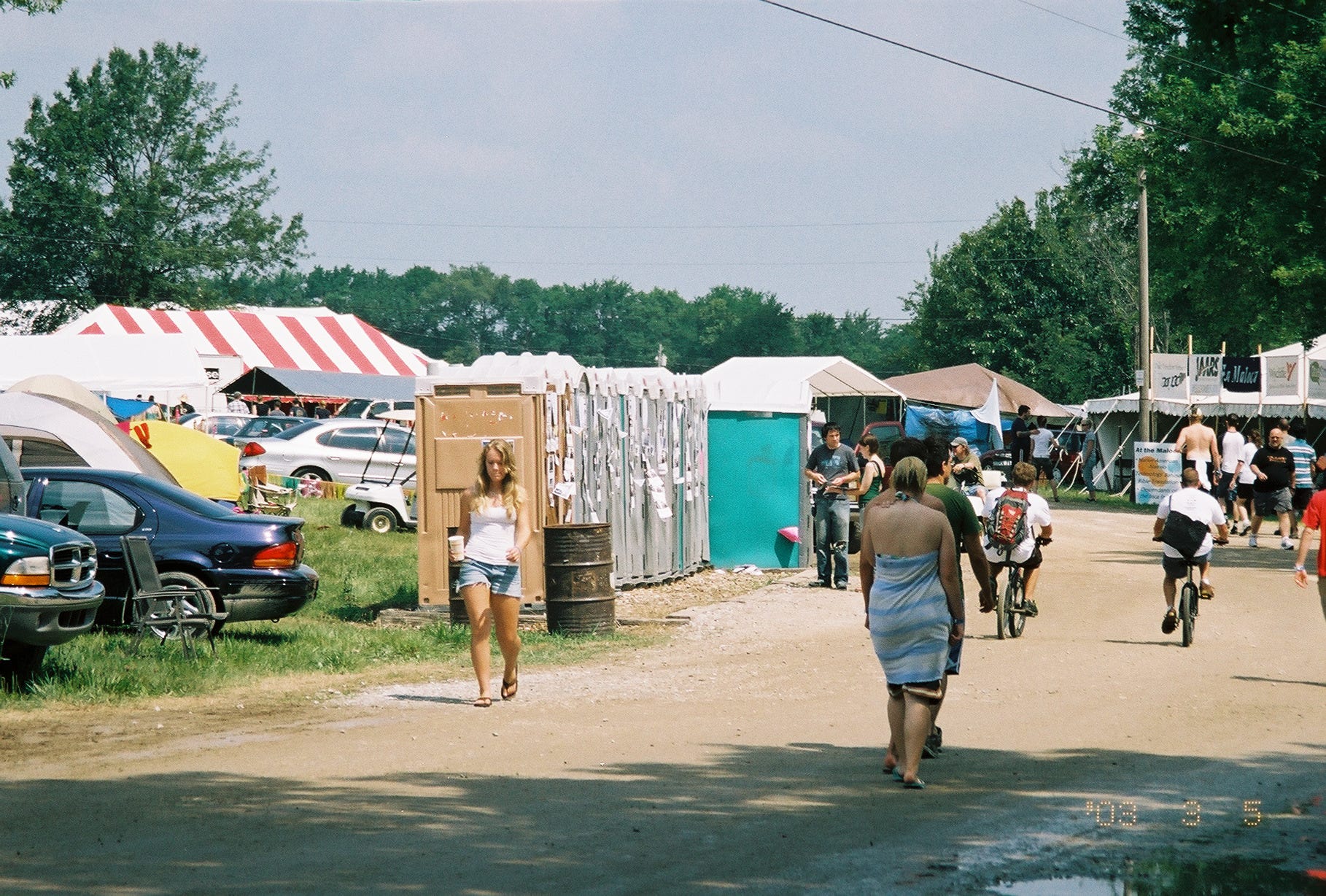 My friends and I would attend “Goth Prom,” vegan potlucks, youth group sermons, and hippy drum circles. Walking down the dirt roads you would see punks with mohawks and safety pins in their clothes on one side, and homeless people that lived in a black school bus on the other. (Though as my friend expertly pointed out, "the first sign that they're not actually homeless is their $110 festival ticket.") A Red Cross Bloodmobile was parked next to a mobile tattoo studio, just behind the communal shower houses fed by an artesian well. The sulfur smell of the water would lead you to question the efficacy of your shower, but—unlike the bus dwellers— at least you were trying. Others would bathe in the canoe lake, leading the festival organizers to post rules that the only soaps and shampoos permitted for lake bathing had to be chemical free. Between fart smelling water, bathing in a lake with cleaning products lacking any product actually capable of cleaning, and not bathing at all— the hot July sun made the inside of each of the festival tents smell like the fish section of an Asian market. And that was before Irish punk band Flatfoot 56 threw actual raw fish on the crowd during their nautical themed midnight concert.