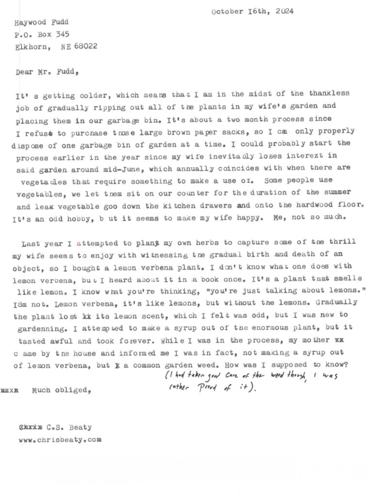 When Haywood’s next letter arrived in the mail, I was smitten.